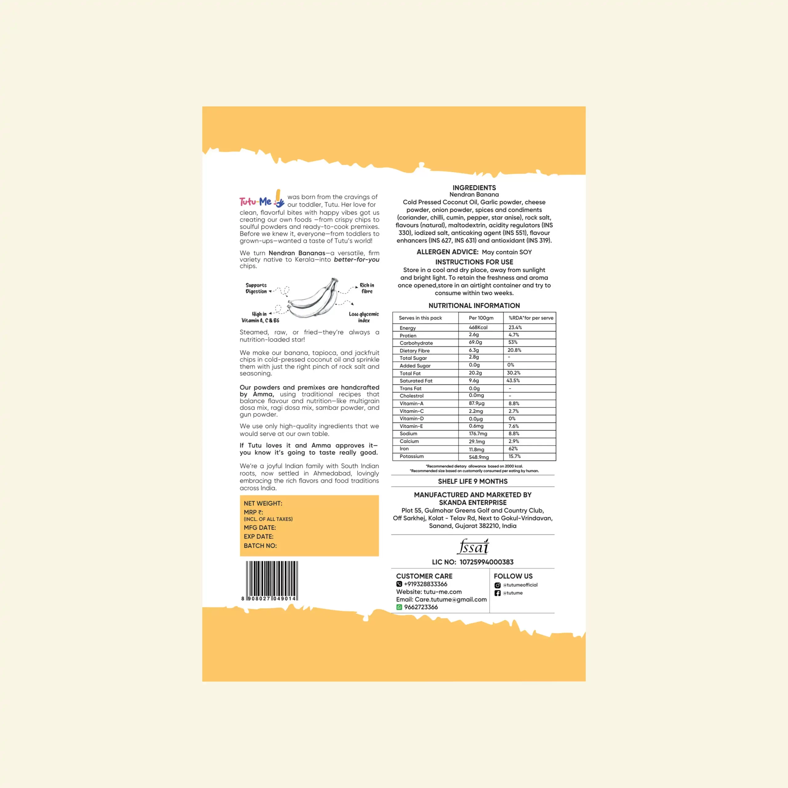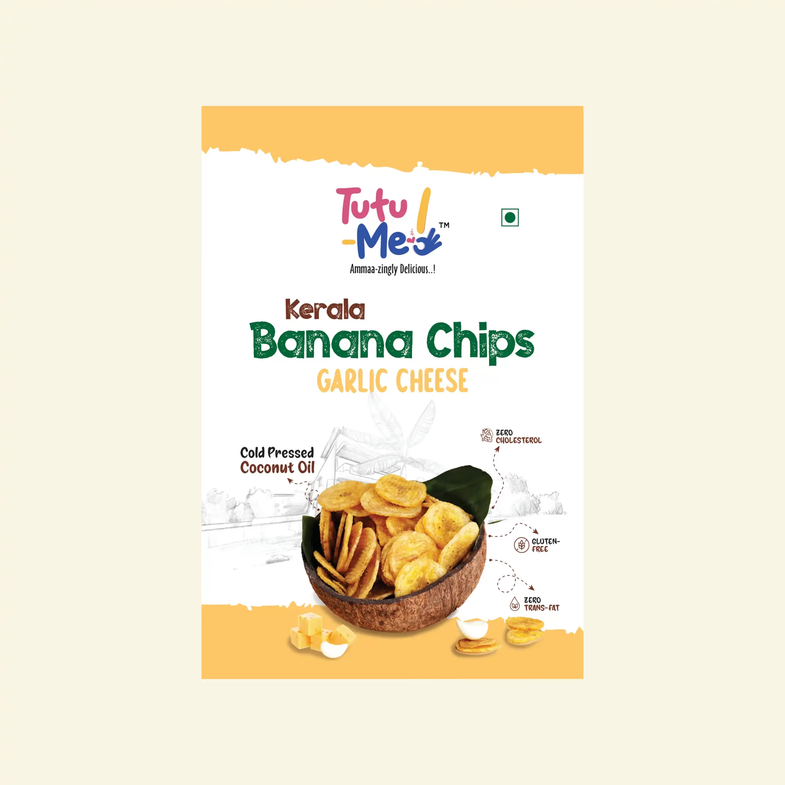 At Tutu-Me!, we’ve given Kerala’s classic Nendran banana chips a bold makeover. Garlic Cheese Banana Chips bring together creamy cheese flavor with a touch of garlicky zing—crunchy, addictive, and cooked only in cold-pressed coconut oil.