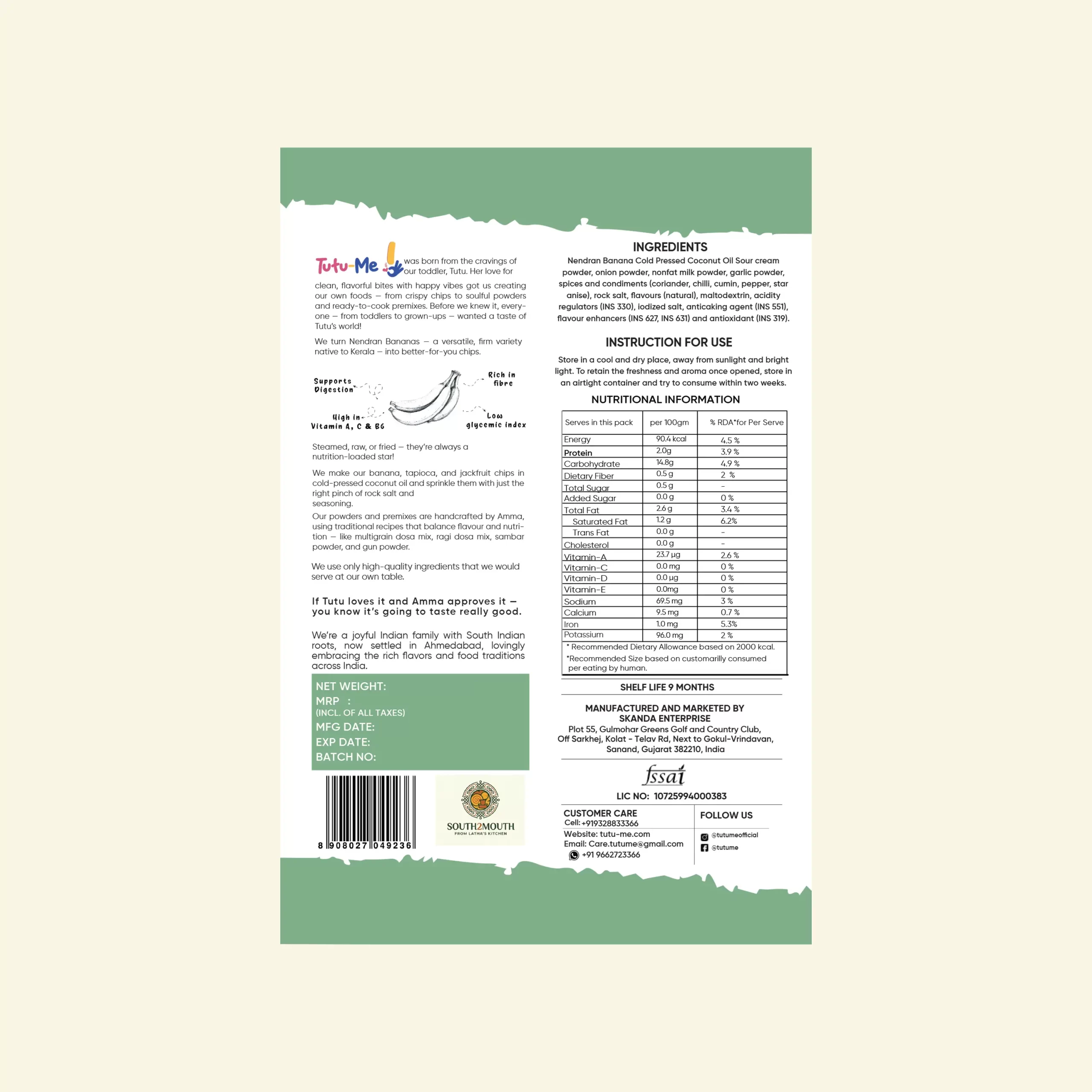 Creamy, tangy sour-cream & onion flavoured Nendran banana chips.
